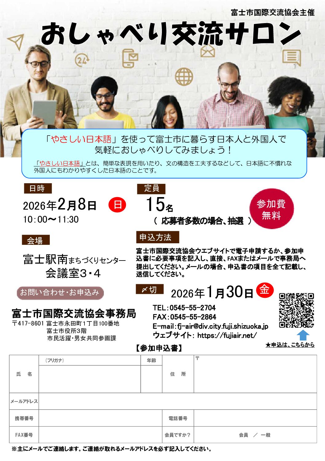 - 参加申込みをして頂いた方には、メールにて参加の可否をご連絡します。